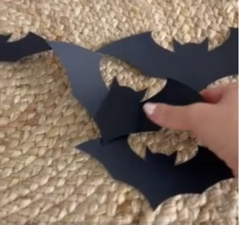 These paper bats are sooo fun!! You get 16 pieces per package, 8 of each size. Use a little piece of tape (we recommend a rolled-up piece of painter's tape) and stick to the wall, cabinets, shelving or anywhere! For extra dimension, fold the wings in just a little bit, and tape to your wall, or hang from fishing line! -- they look fantastic! Check our video for these cuties in action!