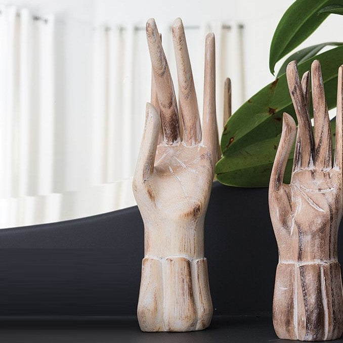 The Offering Hand Statue is a gestural hand delicately carved from albizia wood. This a beautiful addition to your space as an accent on a bookshelf, as an entryway item to hold keys or to hold jewelry.