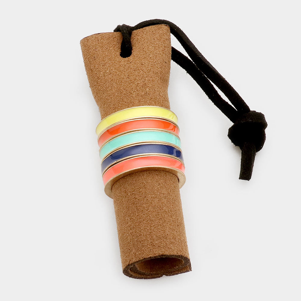 Enamel Colorful Stackable Rings (Multi - Set of 5, Sz 7.5)