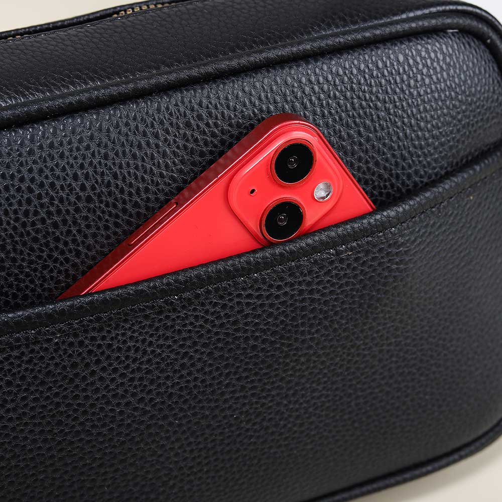 Navy blue faux leather crossbody purse bag with a sleek, versatile design. Perfect size for everyday essentials and hands-free style on the go.