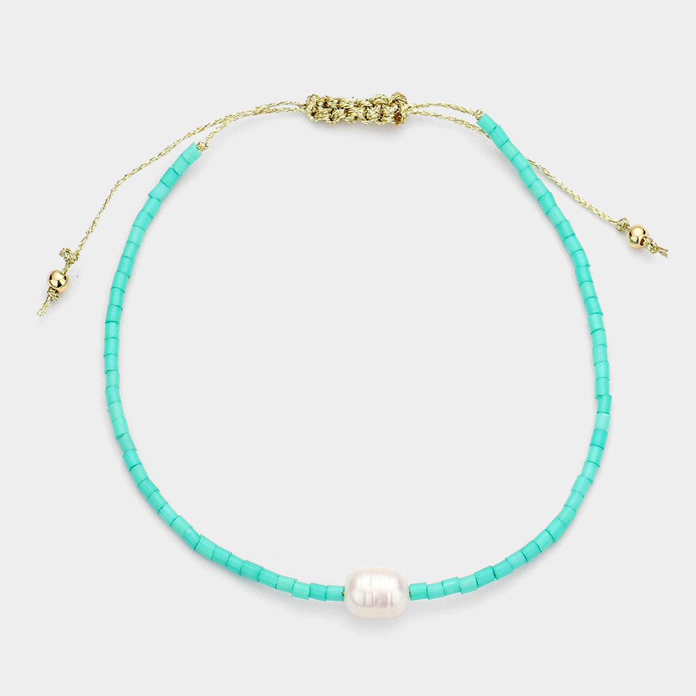 Freshwater Pearl Accented Beaded Bracelet (Mint)