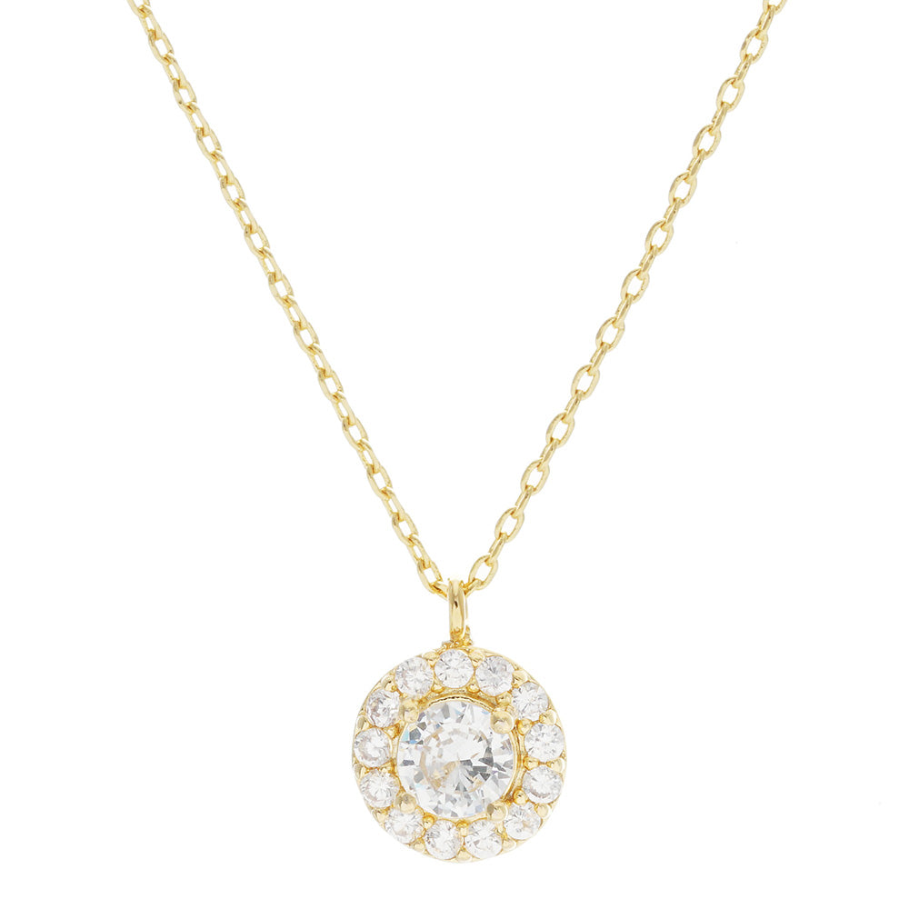 Gold Dipped CZ Round Pendant Necklace (Clear)