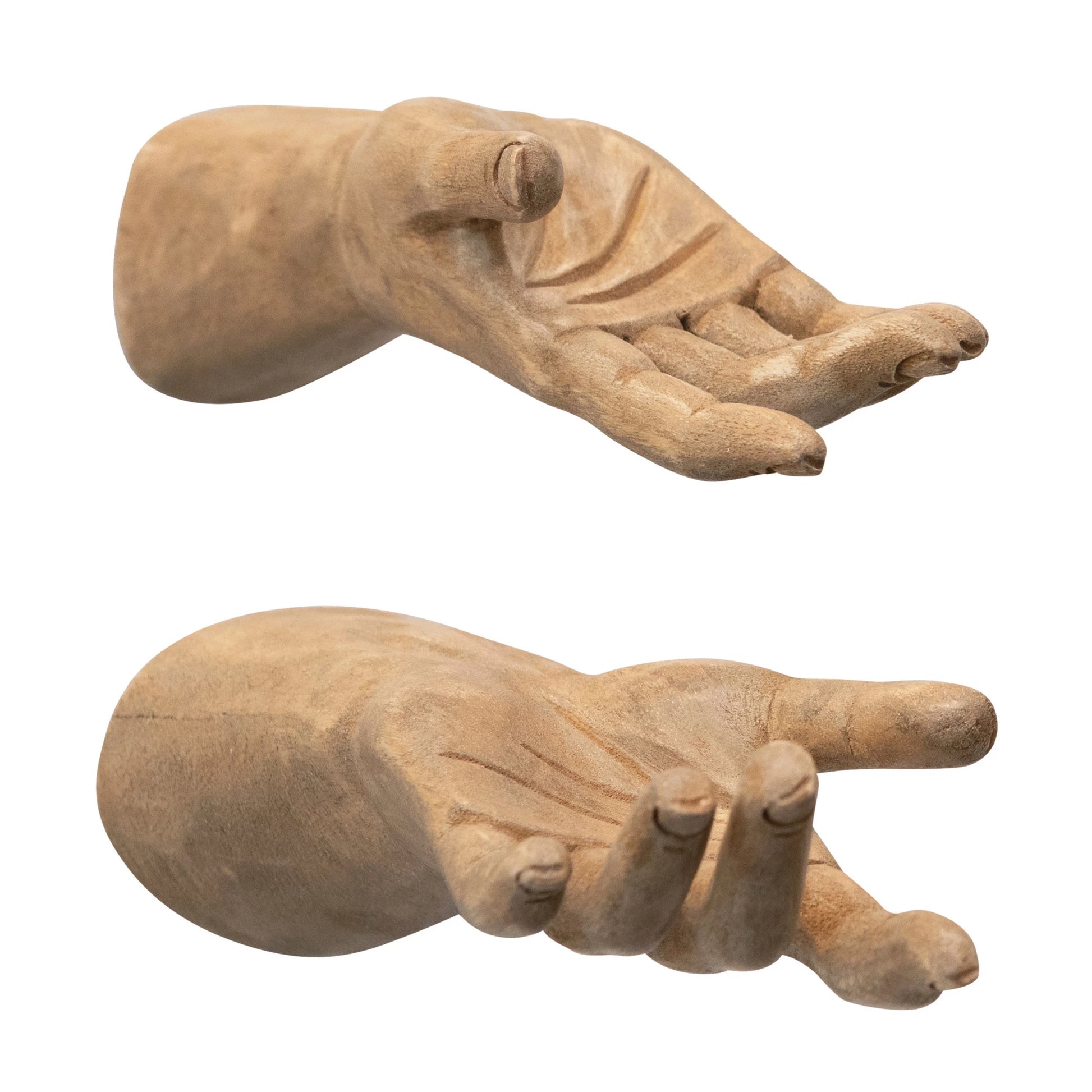 Hand-Carved Mango Wood Hands, Medium (Hangs or Sits, Set of 2)