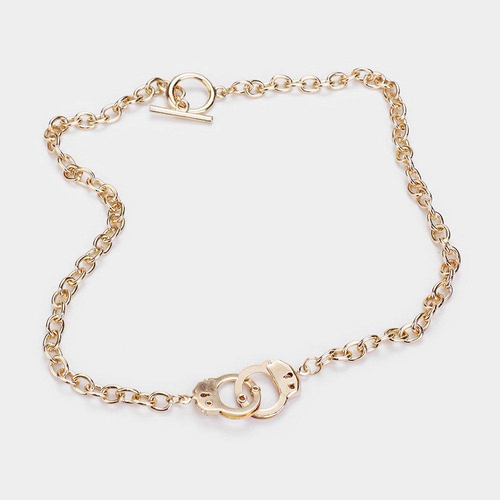 Handcuffs Pendant Toggle Chain Necklace (gold)