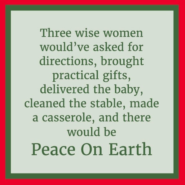Side 2: Three wise women would've asked for directions, brought practical gifts, delivered the baby, cleaned the stable, made a casserole, and there would be Peace On Earth