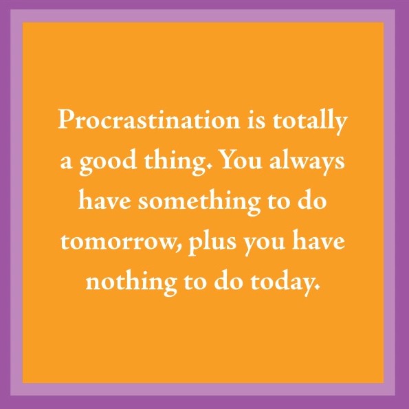 Side 2: Procrastination is totally a good thing. You always have something to do tomorrow, plus you have nothing to do today.