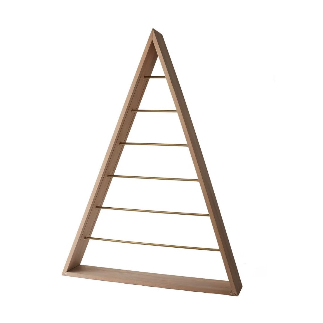 The Knull Framed Tree is a tree created from a triangular wooden frame and horizontal metal bars. This tree can be styled as a free-standing Christmas tree, or mounted to a wall with attached hardware. Also ideal in a retail setting.