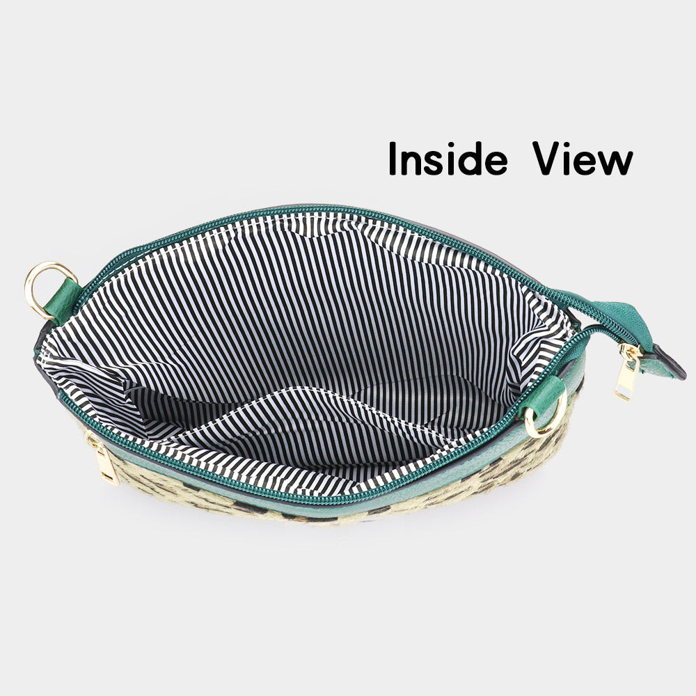 Leopard Patterned Accented Faux Leather Crossbody Bag/Purse/Clutch