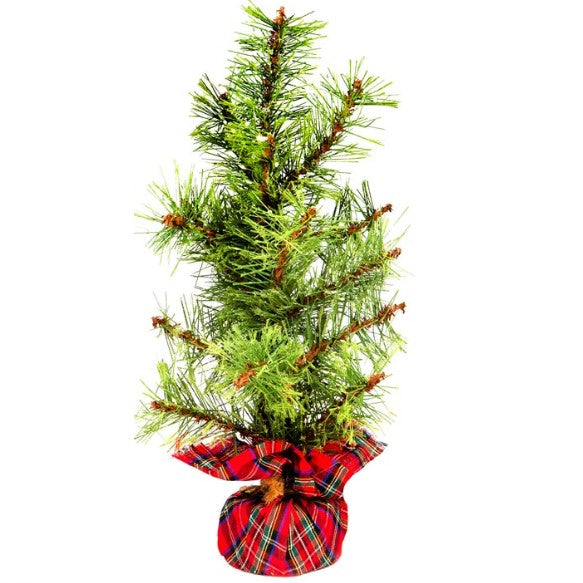 Decorate smaller spaces with holiday cheer by adding this mini-Christmas tree. The festive wrapping on the base meshes with numerous yuletide themes, and the 5.5" wide by 12" high by 5.5" deep sizing fits flawlessly on accent tables and nightstands.