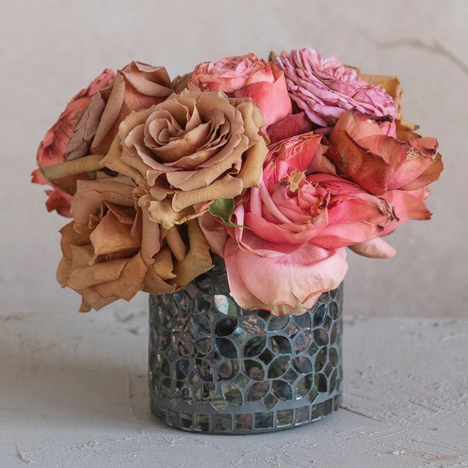 Mosaic Mercury Glass Votive Candle Holder & Vase (Aqua Blue)