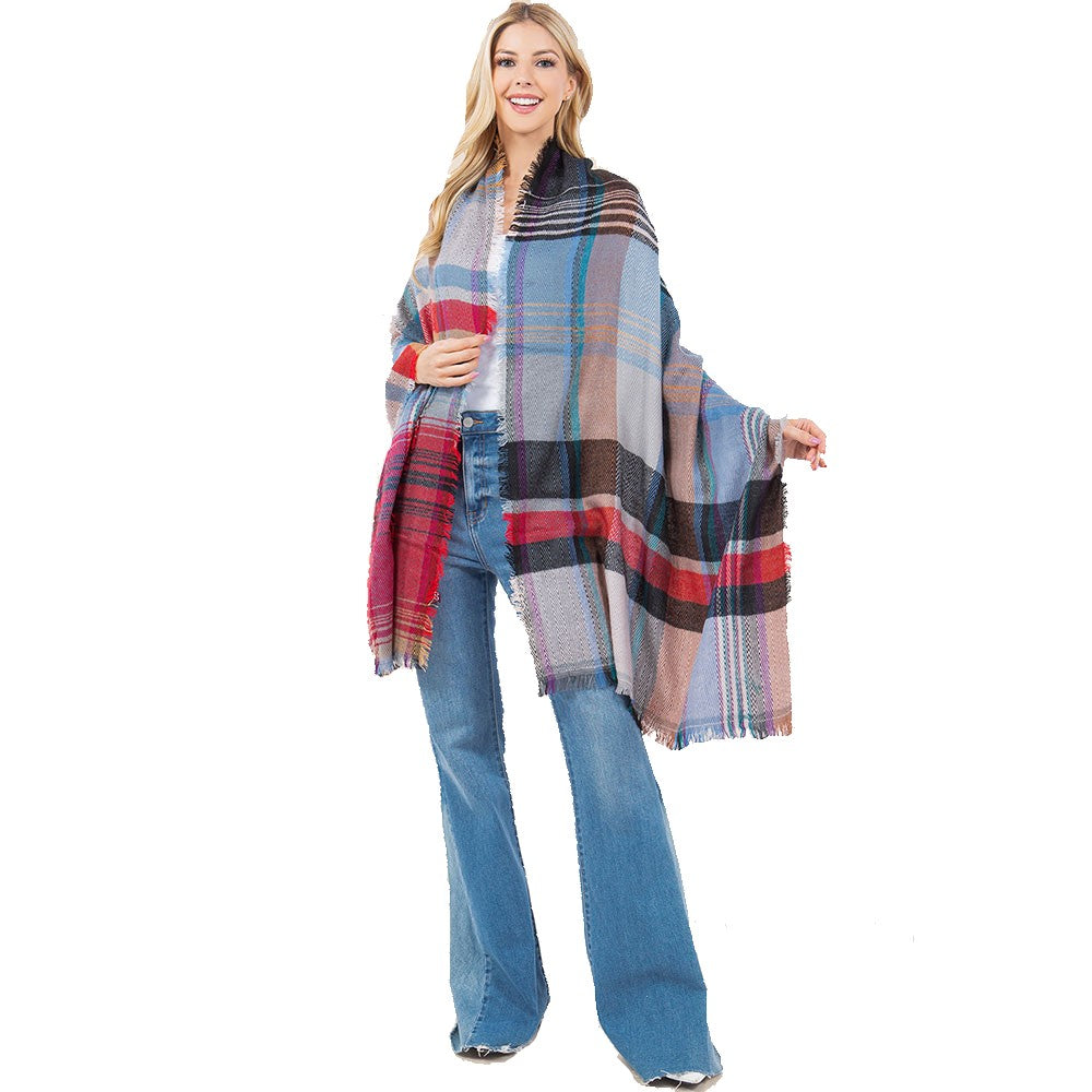 Wrap yourself in cozy style with this oversized plaid scarf, featuring a soft woven texture, multitone check pattern, and frayed edges. Perfect for layering over casual outfits or outerwear, this versatile accessory adds warmth and charm to your everyday look.