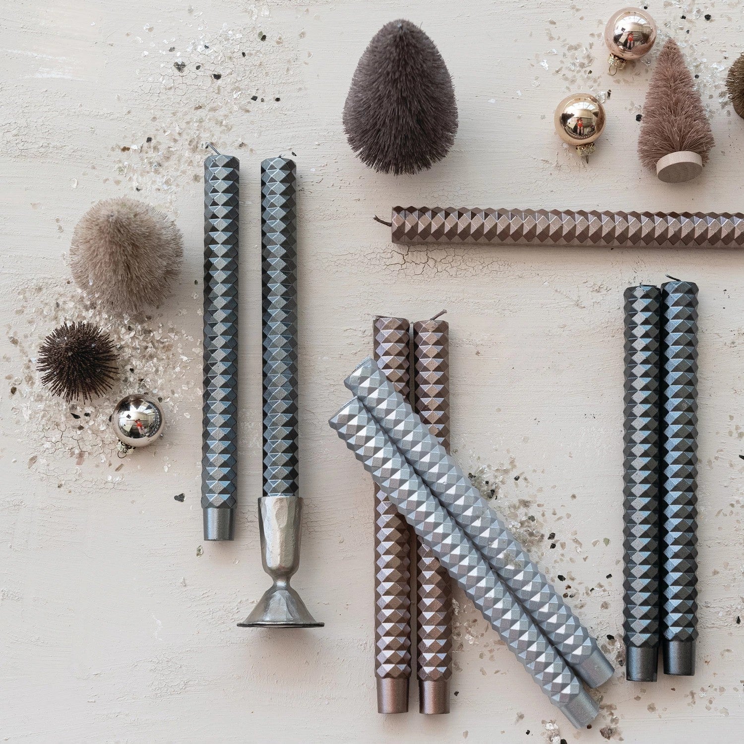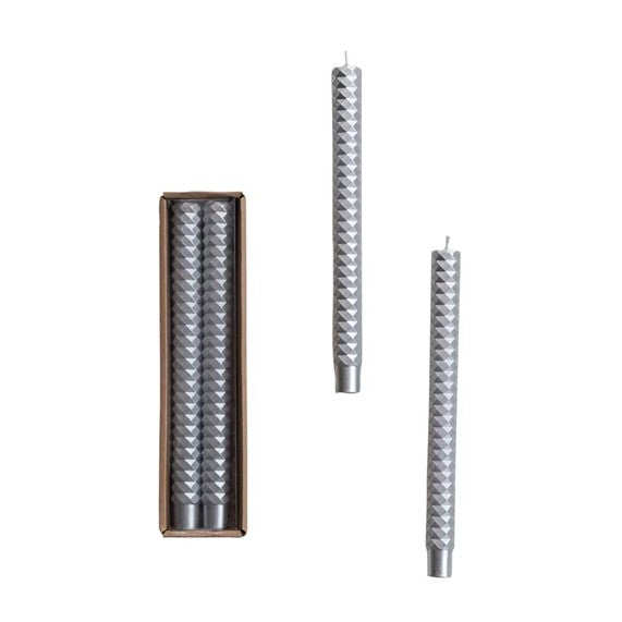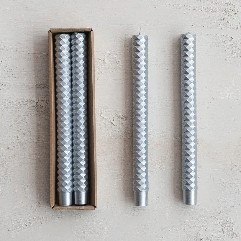 Add elegant sparkle with Silver Faceted Taper Candles in Box, Set of 2, perfect for holiday décor, special occasions, or stylish table and home displays.