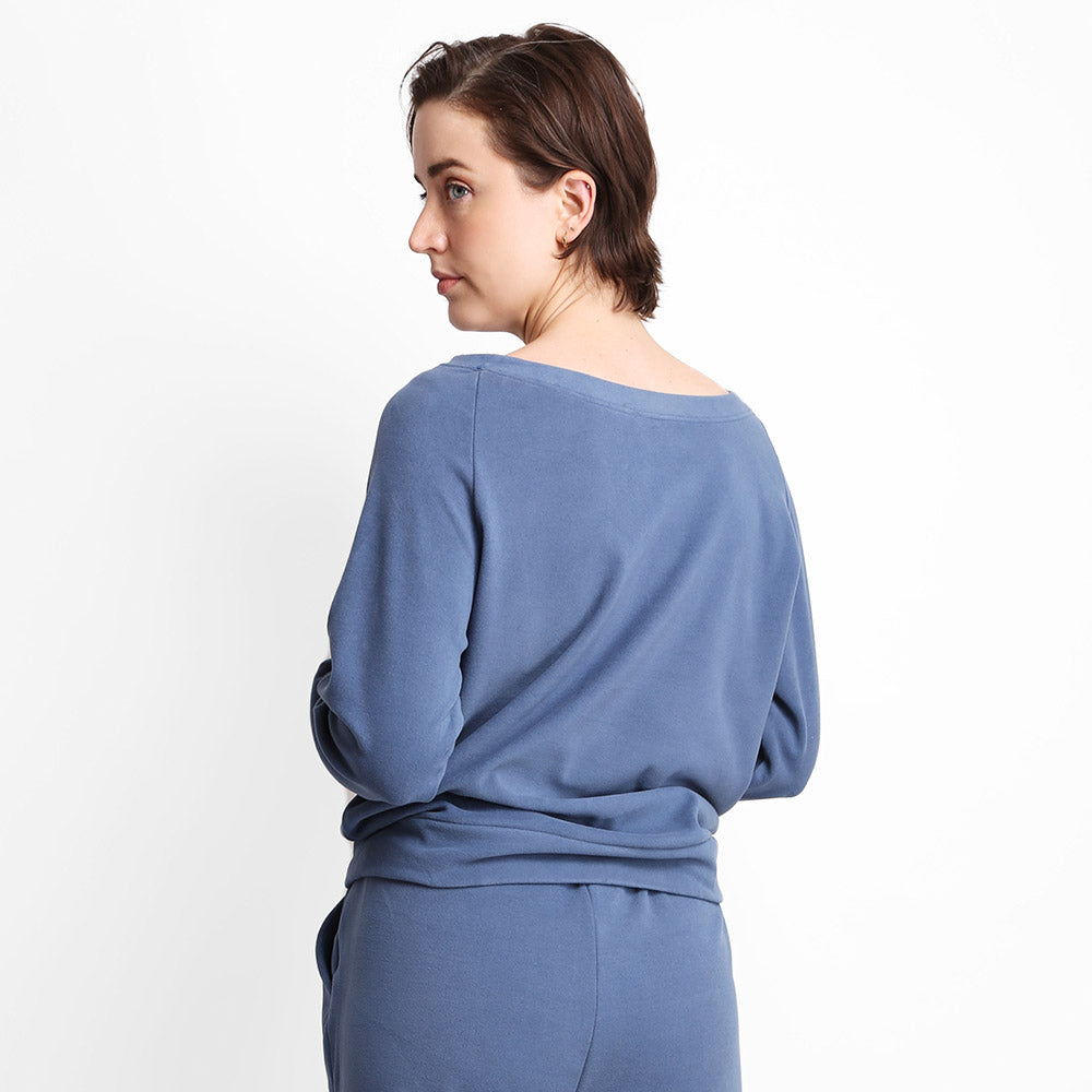 Soft Boat Neck Fleece Sweatshirt (Denim Blue)