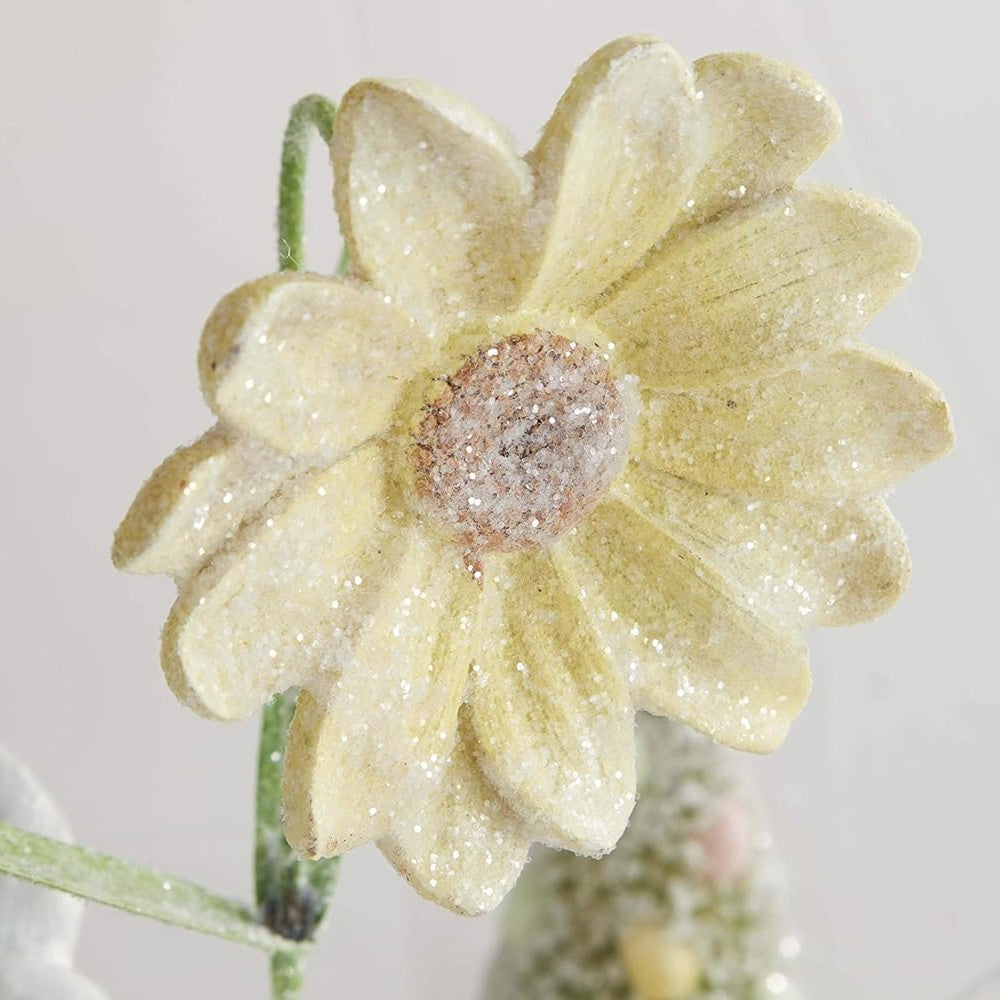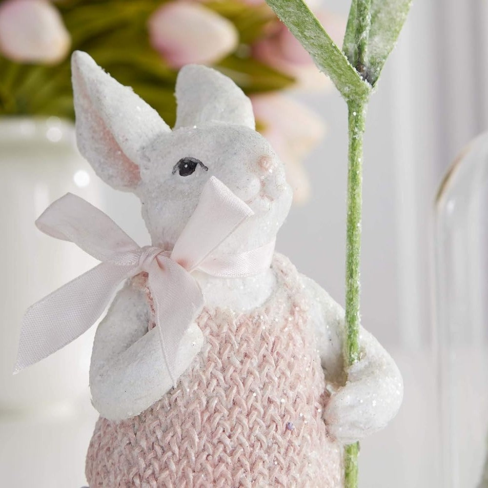 Add sparkle to your spring décor with this Glitter Bunny Rabbit figurine, dressed in a pink outfit with a matching bow and holding a large daisy flower—sweet and charming!