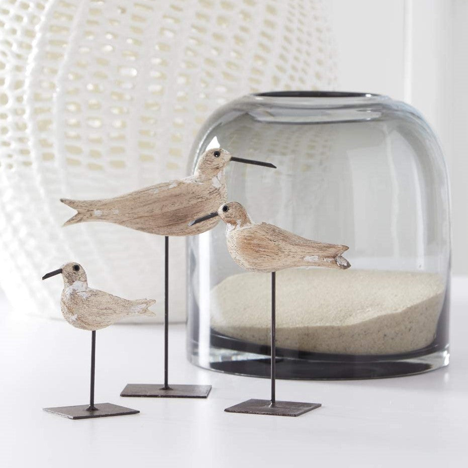 Whitewashed Wood Seagull Birds on Metal Spindles (Set of 3, Grad Sizes)